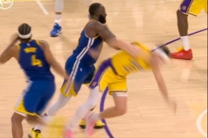 GIF-追梦掩护时推翻里夫斯,被吹进攻犯规,克莱伯和追梦差点冲突