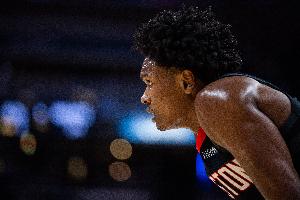 在阿门的防守下,尼克斯后卫布伦森半场4中0仅靠罚球拿到2分。