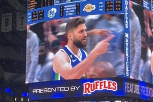 独行侠迎战湖人,首节暂停时大屏幕播放短片,致敬旧将克莱伯。
