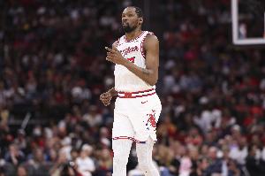 体育资讯4月13日讯 常规赛收官战,火箭主场132-101大胜灰熊,老将杜兰特在火箭的第一个赛季结束。
